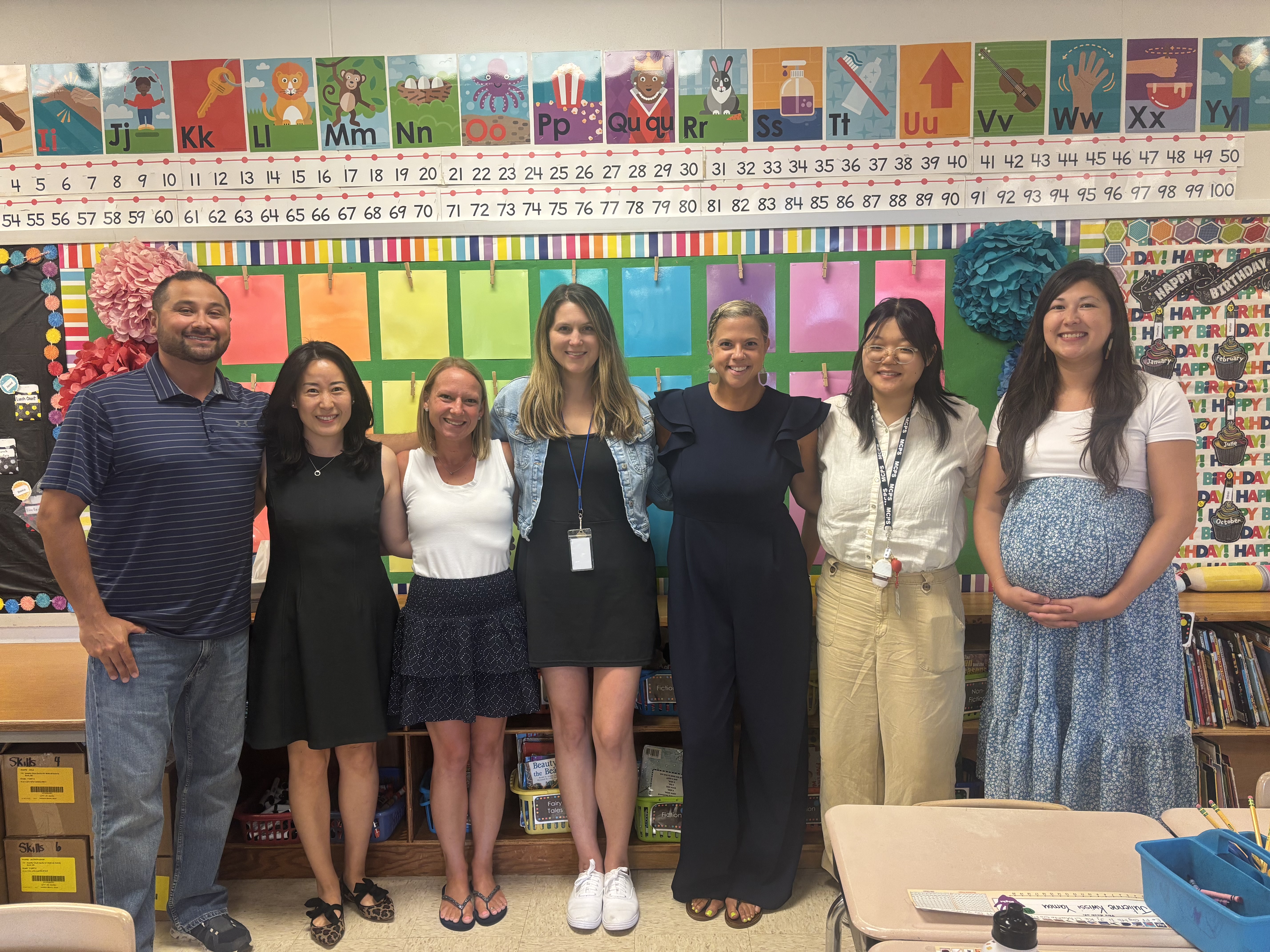 From left to right: Mr. Ensley, Mrs. Chang, Mrs. Cross, Mrs. Nelson, Mrs. Ingram, Ms. Zang, and Mrs. Murphy