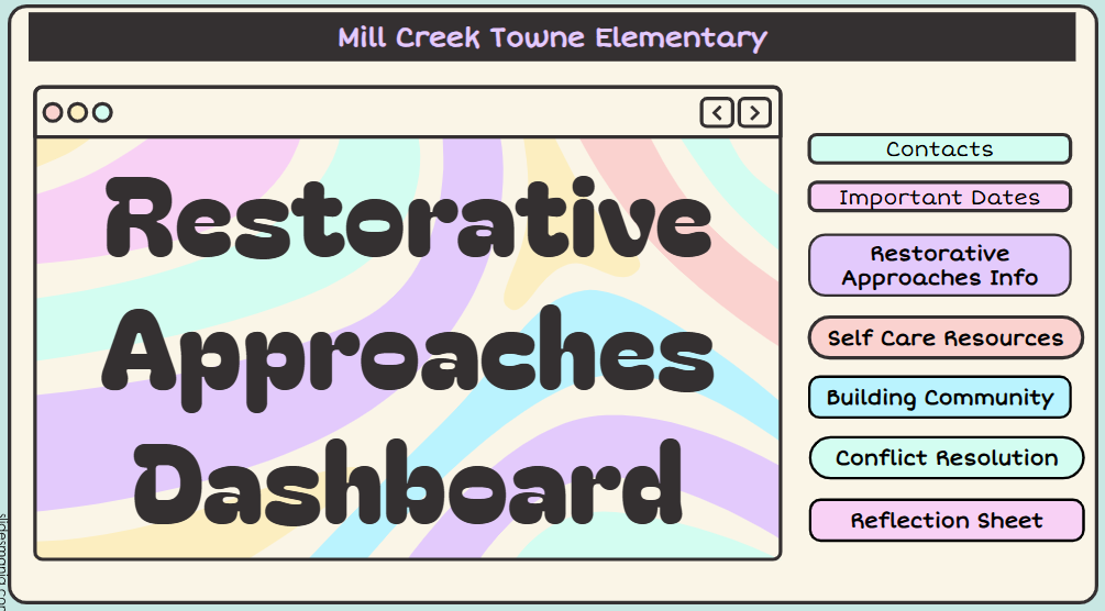 Mill Creek Towne Elementary School's Restortative Approaches Coach is Jessica Baker-Braxton. Please click here or on the image below for additional information about our school's resortaitve approaches.
