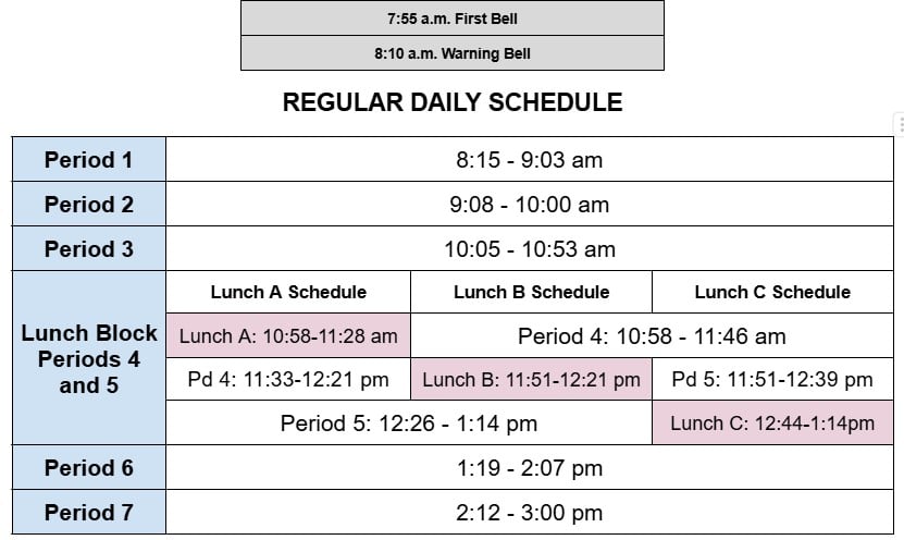 Bell Schedules (Advisory days are wednesdays)